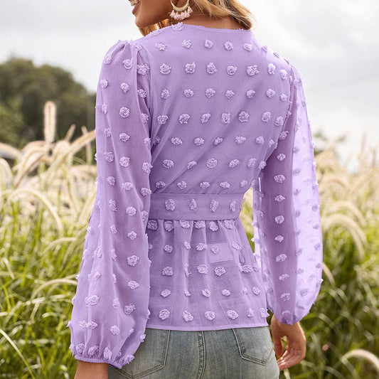 Blouse Femme Élégante à Col V en Dentelle Jacquard